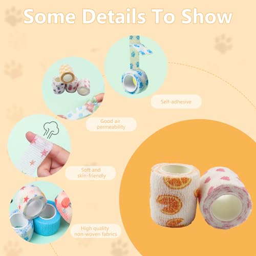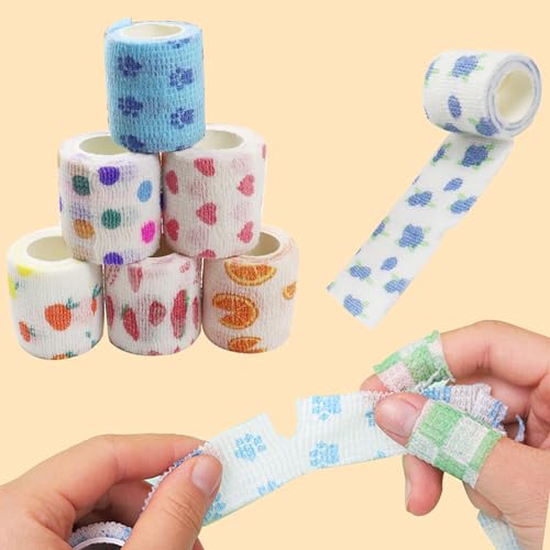 【Dimensioni e Portabilità】: Le bende autoadesive sono leggere e facili da trasportare. Sono ideali per kit di pronto soccorso, attività all'aperto e emergenze di viaggio. Ci sono un totale di bende autoadesive da 12 rotoli con motivi diversi, e ogni rotolo ha una dimensione di 4.5 cm x 5 m.