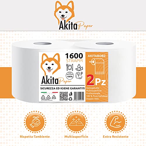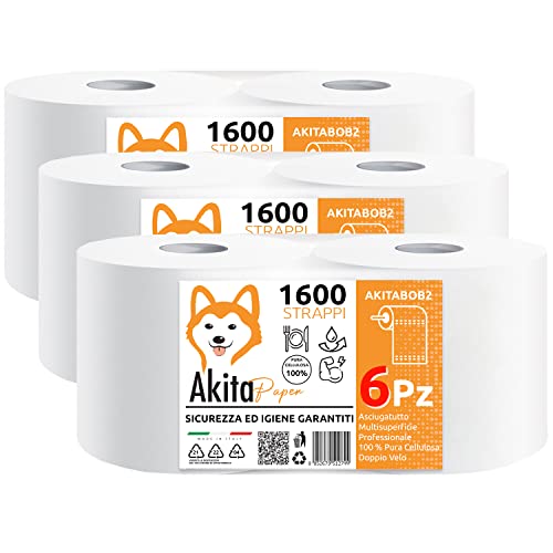 6 Rotoli Carta Asciugatutto 4800 strappi 6 Kg Lunga Durata Extra Resistente Bobina carta Asciugatutto 2 veli pura cellulosa Microgoffratura Rotoloni asciugatutto uso alimentare casalingo industriale