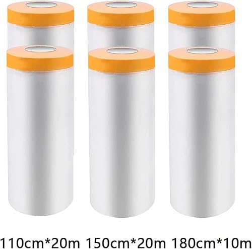 6 Rotoli Copritutto Protettivo per Coprire con Nastro Adesivo,110 cmx20m/150cm x 20m/180cm x10m Pellicola di Copertura Autoadesiva per Imbianchino, Film per Mascheratura con Nastro Adesivo