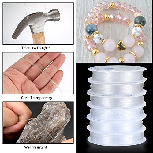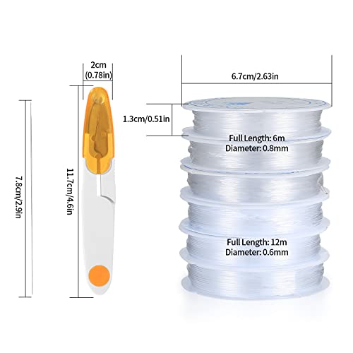 6 Rotoli Filo Elastico Trasparente per Bracciali, Filo di Nylon Elastico per Perline Collane Braccialetti Decorazione, 0,8 mm*6 m;