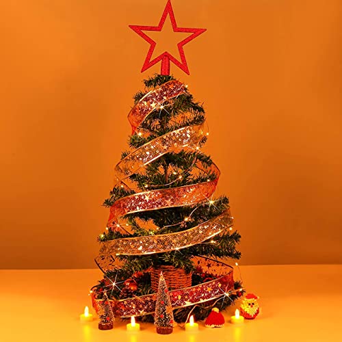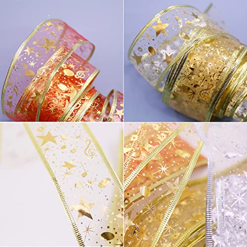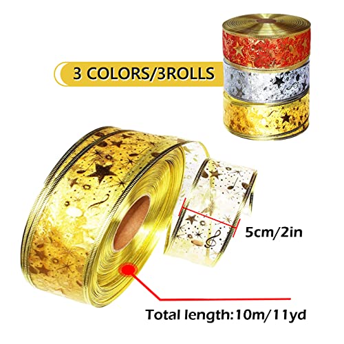2 Rotoli di Nastro Natalizio per Confezioni Regalo,Nastro Natalizio in Organza Satinato, Nastro Raso Natalizio,per Confezioni Regalo di Natale,Cucito,Artigianato fai DaTe (5cm/20m) (Oro+Argento+Rosso)