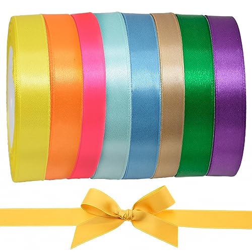 8 Rotoli Nastro di Raso,Nastro Colorato Raso,Nastro di tessuto di seta raso,Nastro Raso,Nastro Doppio Raso,Nastri colorati stoffa,per Confezione Regalo,Matrimoni,Fiocchi,Natale,8 colori,1cmx22m