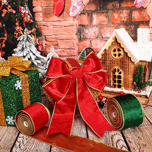 2 Rotoli di Nastro di Velluto Natalizio Nastro per Rifiniture Cucito Nastro con Bordo Metallico Nastro in Tessuto per Fiocchi Pacchi Regalo Decorazioni Floreali (Verde, Rosso, 2,5 Pollici x 6 Iarde)