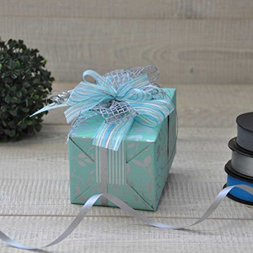 Rotolo di carta da regalo 50mx50cm, colore turchese e argento, decorazione con tralci