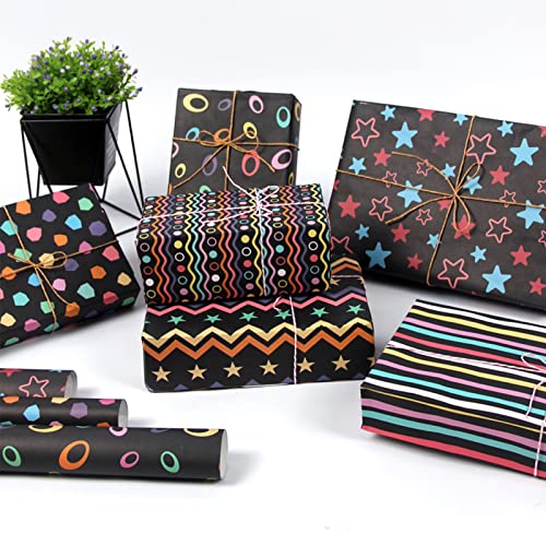 【Carta Da Regalo Squisita】Rotolo carta regalo esistono vari stili e modelli, come: stelle nere, fiori semplici, simpatici animali, stelle cadenti, lettere, punti, feste di compleanno, cuori, vari tipi di linee. è un grande aiuto per la confezione regalo.