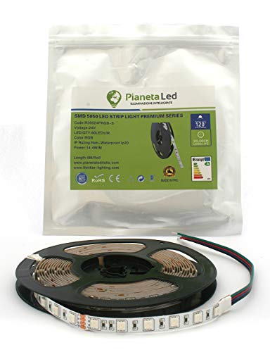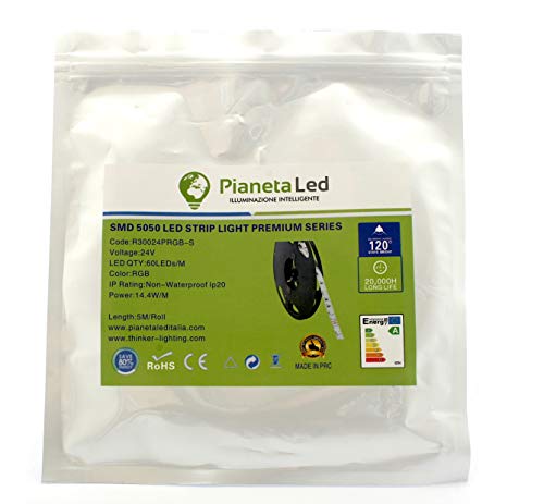 ROTOLO 5 METRI STRISCIA 300 LED 5050 SMD RGB 5 MT 24 V CON BIADESIVO 3M LUCE ROSSO VERDE AZZURRO USO INTERNO