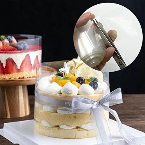 Scena d'uso: questo colletto per torta ha un'elevata superficie liscia e una buona trasparenza. È adatto per mousse, decorazioni per torte, anelli di rivestimento e stampi. Una buona curvatura e trasparenza ti aiuteranno a ottenere bordi della torta puliti e a proteggere l'integrità della torta senza danni. È uno strumento di cottura molto pratico.