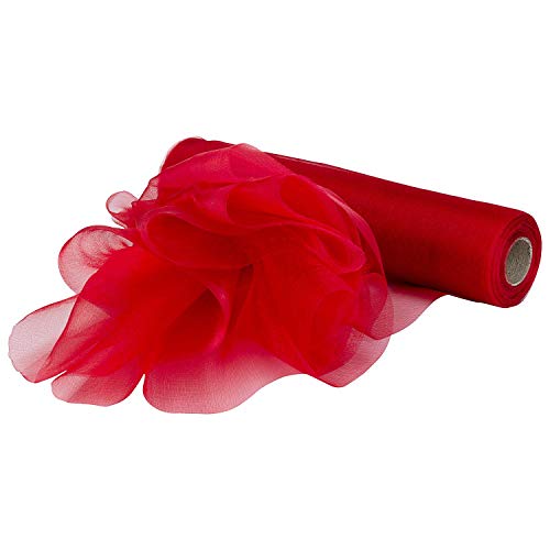 Rotolo di tessuto trasparente in organza, 29 cm x 25 m, color rosso, elegante panno decorativo per matrimoni, sedie, runner da tavola, bomboniere, forniture per nastri, accenti per abiti e borse