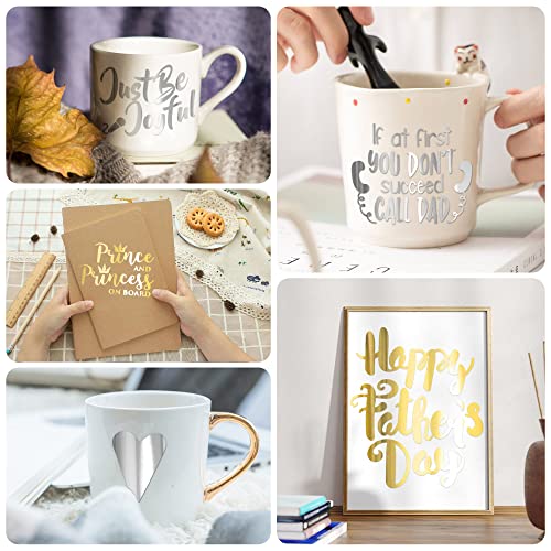 Ampia gamma di applicazioni: il nostro rotolo di vinile adesivo permanente argento può essere utilizzato con nastro di trasferimento e può essere utilizzato su qualsiasi superficie liscia e asciutta, come quaderni, boccette sottovuoto, fette di legno naturale, palloncini, vasi di fiori, marcatura, strisce, decalcomanie, cover per telefoni, cover per laptop, etichette, tazzine da caffè, tazze.