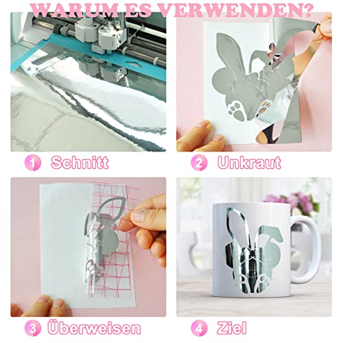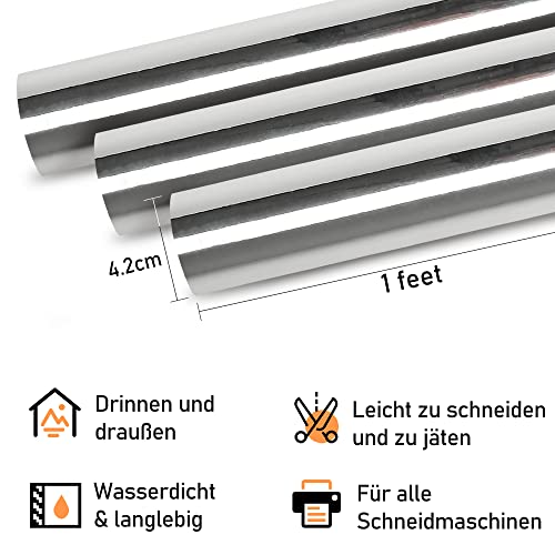Rotolo di vinile adesivo argento cromato, vinile argento -30 cm × 305 cm-Vinile adesivo permanente metallico per Silhouette Cameo, macchina da taglio, facile da eliminare