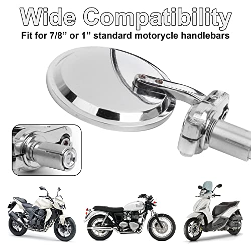 Rotondi Moto Specchietti Retrovisori Laterali 7/8'' 22mm Specchio di Manubrio per Chopper Cruiser(Argento)