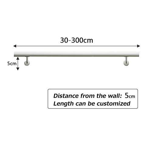 Rotondo 5 cm 30-300 cm Lunghezza. Kit corrimano in Legno Bianco per Scale da Interno - Include Staffa in Acciaio Inossidabile