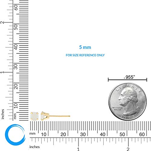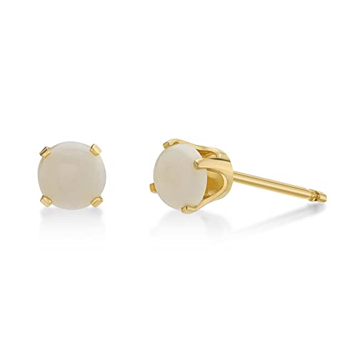 Misura - 5 mm rotondo bianco naturale opale orecchini realizzati in oro giallo 14 carati.