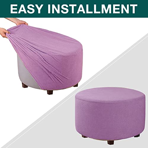 Rotondo Copri Pouf Elasticizzato, Jacquard Spandex Copri Poggiapiedi Quadrato Con Fondo Elastico Pieghevole Antiscivolo Copertura Dell'Ottomano Per Bambini Animali -Viola-S