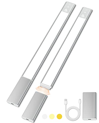 ROTOPATA Luce Armadio con Sensore Movimento Senza Filo per Cucina Sottopensile con Batteria Rimovibile e Ricaricabile, Temperatura a 3 Colori Luminosità a 4 Livelli Magnete Incorporato(2 Pezzi, 42CM)