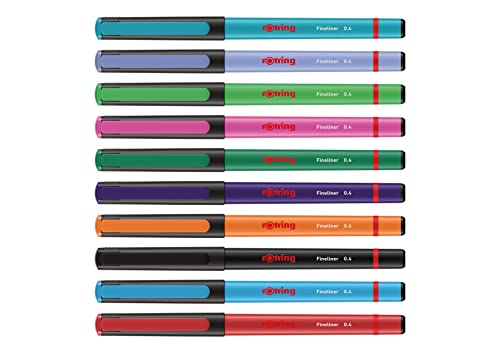 ROtring Penne a punta fine, 0,4 mm, penne da colorare per scrittura e disegno, confezione senza plastica, colori assortiti, 10 pezzi
