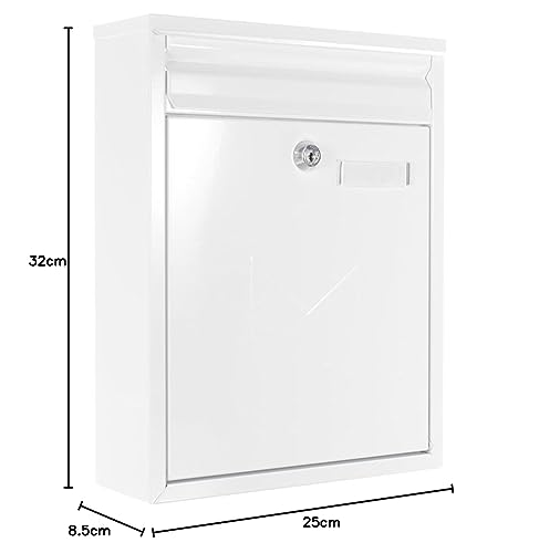 Rottner cassetta delle lettere Como, bianco, serratura a cilindro con 2 chiavi, acciaio, LxHxP 250x320x85 mm, kit di fissaggio incluso, targhetta portanome