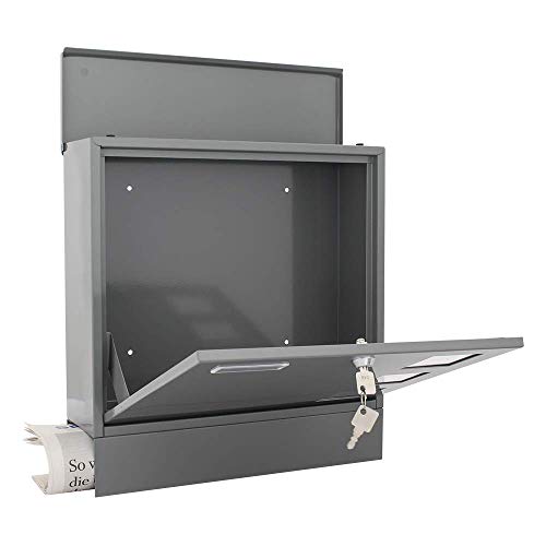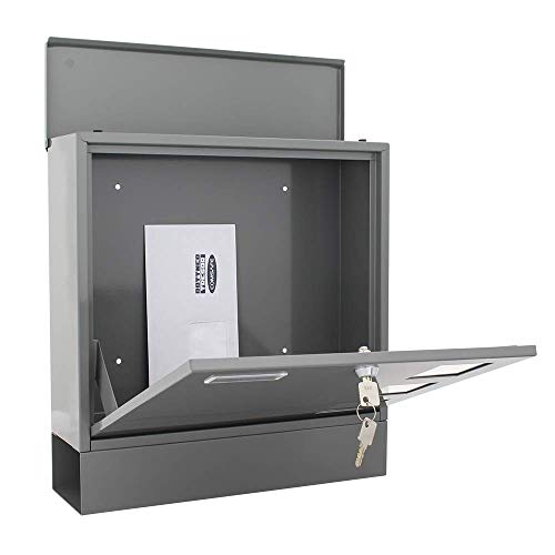 Rottner T06049 cassetta postale Postale Grey, in acciaio con apertura frontale e fermaporta, supporto per giornale e 3 finestrelle di ispezione, colore grigio