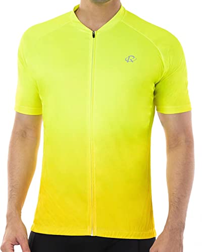 ROTTO Maglia Ciclismo Uomo Magliette Bici Manica Corta Serie di Colori Sfumati con Tasca Cerniera