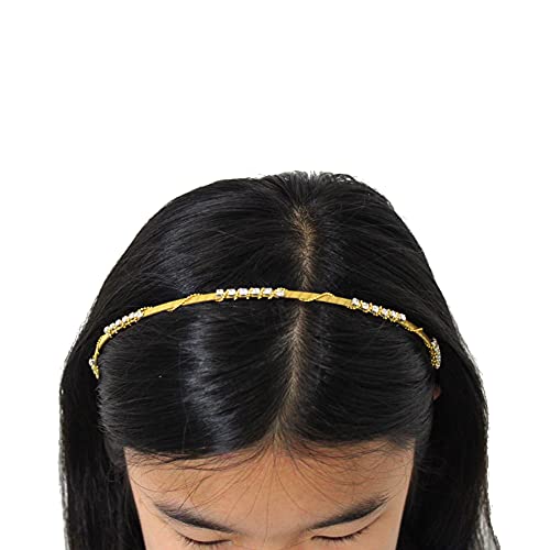 Cerchietto sottile, larghezza 4 mm. Base per cerchietto in metallo rivestito in tessuto. Mix di strass e catena fantasia dorata. Belle finiture.