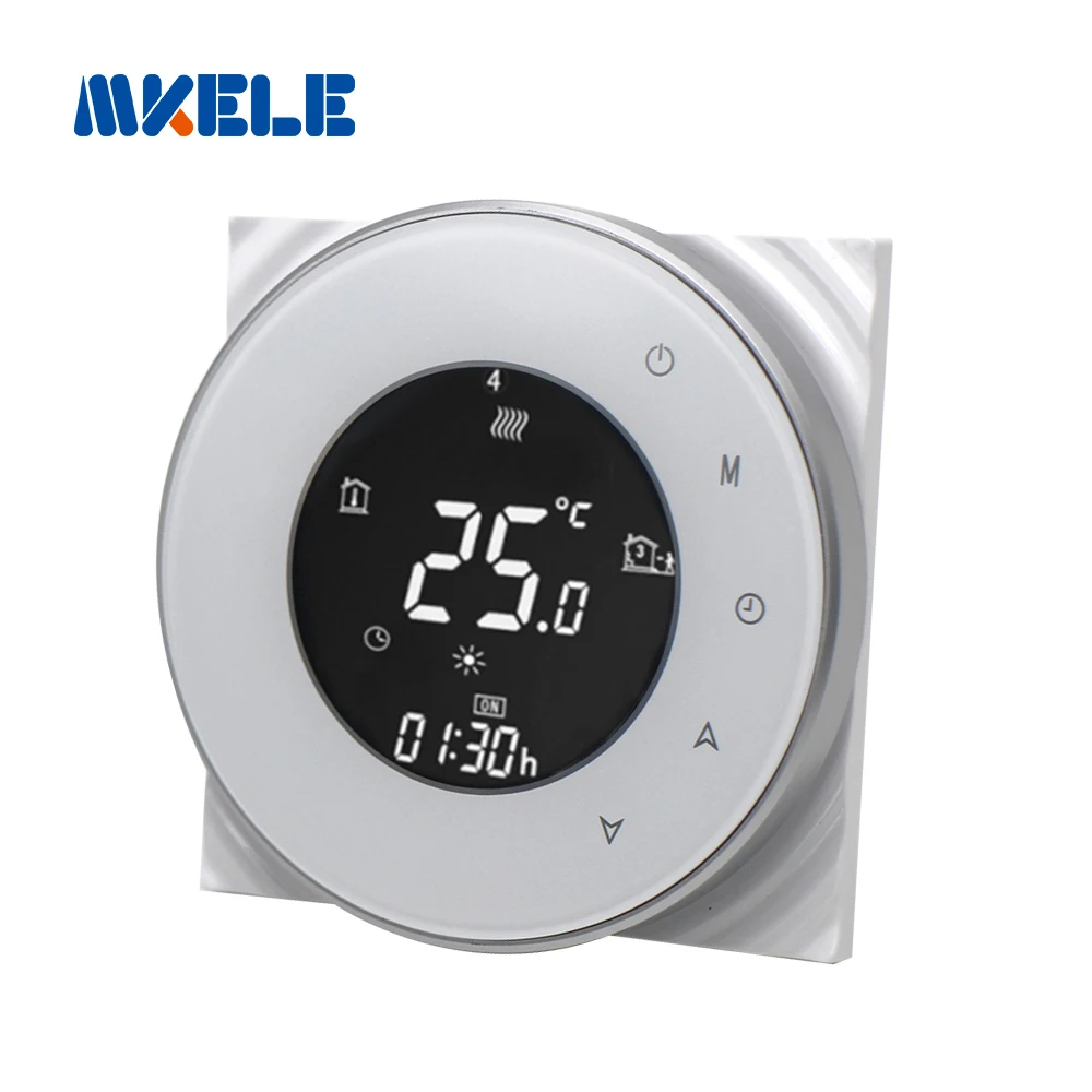 Round Smart WiFi Touch Screen Thermostat Controller for Underfloor Heating System with Alexa/Google Home Makerele MKBHT-6000