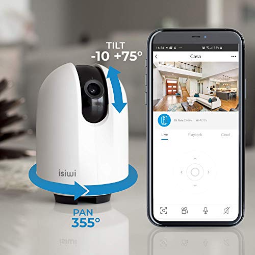 Round Telecamera IP WiFi interno Isiwi per sorveglianza domestica,HD 1080P, Visualizzazione panoramica, Rilevazione di movimenti e suoni anomali, Audio bidirezionale, Baby Monitor con Visione Notturna