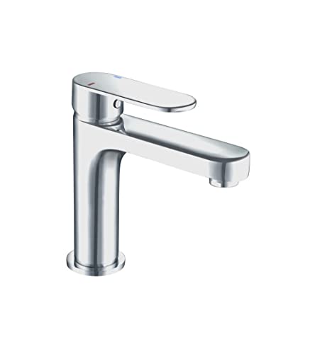 Stile moderno - Meccanismo: cartuccia ceramica Ø 35 mm - Cartuccia a risparmio energetico - Risparmio di acqua: arresto eco-stop e aeratore riduttore di flusso - Maniglia in metallo - Corpo in ottone - Beccuccio fisso - Base: Ø 55 mm - Scarico: Click.