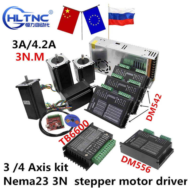 CNC Router Kit 3 4 Axis, Nema23 3N 3A/4.2A stepper motor driver TB6600 DM542 DM556 + USB mach3 Controller + 350W power supply