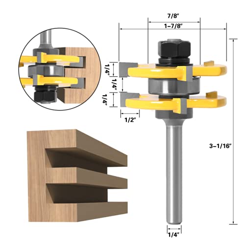 Router Bit Set [3 Pezzi], APLUS 1/4" 6,35mm Fresa per Tagli a 45 Gradi + Frese per Linguette e Scanalature,T Punte di Falegnameria, Strumenti di Lavorazione del Legno per La Casa e Fai da te
