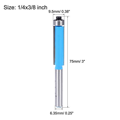 Router Bit 1/4 Shank 3/8" Cutting Dia Flush Trim with Bearing 2 Flutes Carbide for Woodworking Milling Cutter Tool