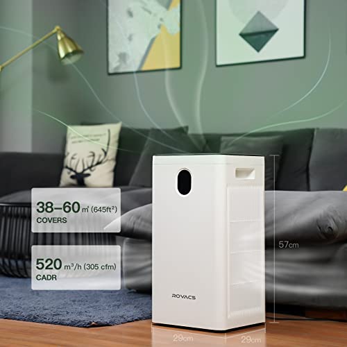 ROVACS Purificatore d'Aria con Vero Filtro HEPA H13, Adatto per 38-60㎡, CADR: 520M³/H, Air Purifier purifica Il 99,97% di Particelle allergiche,Fumo,peli di Animali Domestici,odori (RV550-L)...