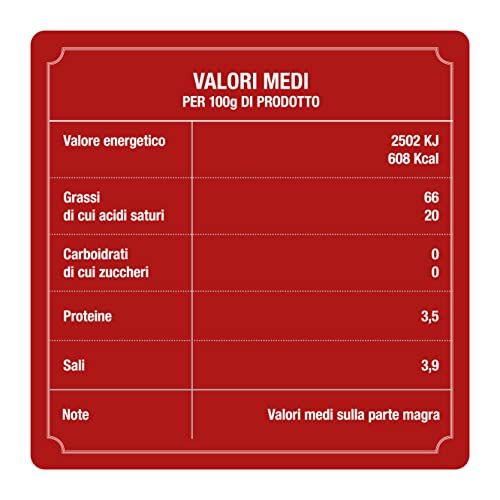 INGREDIENTI: Lardo di suino, acqua, sale, spezie, aglio, piante aromatiche. Certificato da Organismo di Controllo autorizzato dal Ministero delle Politiche agricole alimentari e forestali.