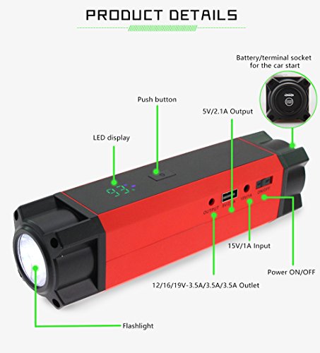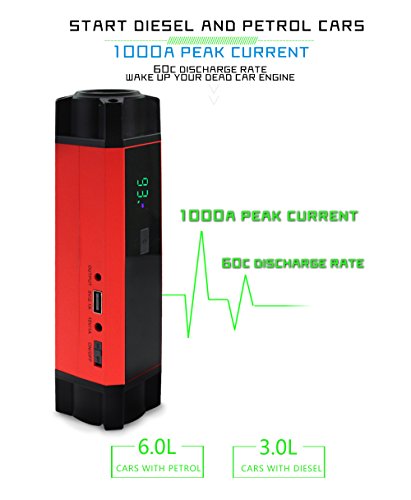 Car Rover Jump Starter Batteria Auto Avviamento 54000mwh(14400mah) 1000A Corrente di Picco, con Display LCD, Torcia LED