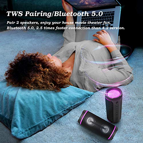 ♫Sincronizzazione Wireless: La speaker Bluetooth da esterno collega 2 altoparlanti insieme, suonerebbero insieme allo stesso tempo! Un altoparlante Bluetooth suona anche alla grande! Bluetooth 5.0 fornisce una maggiore gamma wireless. Il chip Bluetooth 5.0 legge facilmente la playlist musicale e collega qualsiasi dispositivo.