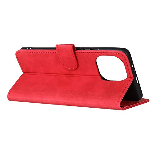 ROVLAK Custodia per XiaoMi Mi11 Case Portafoglio Flip Cover con Slot per Schede Custodia in Pelle Antiurto PU+Case in Silicone TPU Interna per XiaoMi Mi11,Rosso