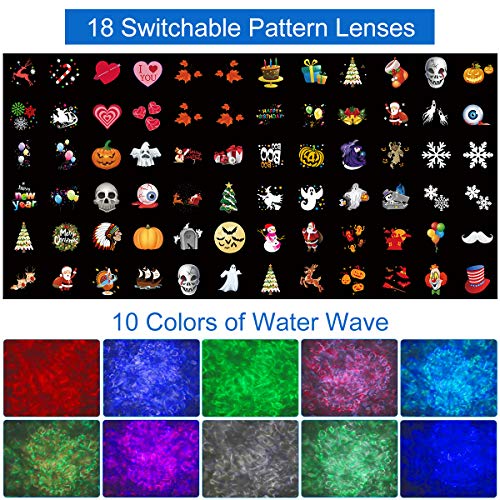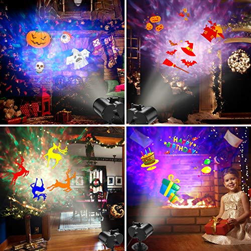 ROVLAK LED Proiettore Natale Esterno Interno Proiettore Luci Natale IP65 Impermeabile con Telecomando18 Modelli Cartoni Animati & 10 Ondulazione Acqua Proiettore Natalizio per Halloween Natale Festa