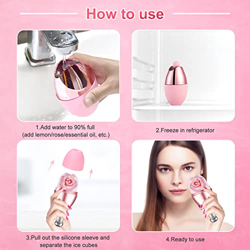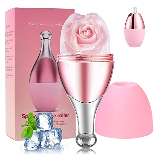 ROVLAK Ice Roller Riutilizzabile Rullo Viso Ghiaccio con Ugello Spray per Alleviare Gonfiore Viso e Occhi, Ghiaccio Roller Viso per Cura Pelle, Rassodare Pelle, Bellezza Viso, Restringere Pori, Rosa