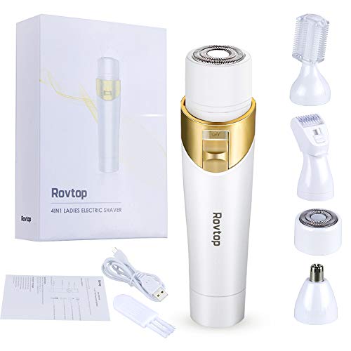 Rovtop Epilatore Elettrico, Funzione 4 in 1, con 4 Trimmer Impermeabile Sostituibile, Depilatore Corpo, Epilatore Sopracciglia, Epilatore Viso, Rasoio peli Naso e Orecchie