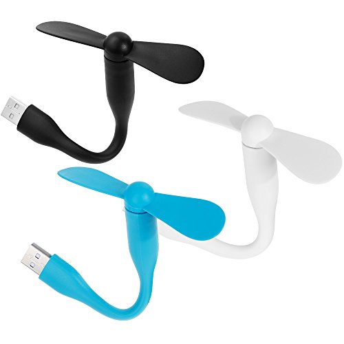 Rovtop Mini Ventilatore Portatile con Collo Regolabile Rimovibile, Set Vendilatore Nero Bianco Blu 3 Pezzi
