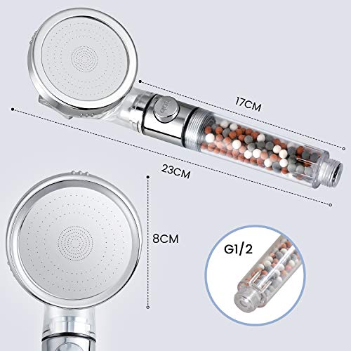 Rovtop Soffione Doccia Anticalcare Alta Pressione - Universale 3 Mode Soffione Per Doccia,55% di risparmio idrico,Filtro e Sfera Minerale