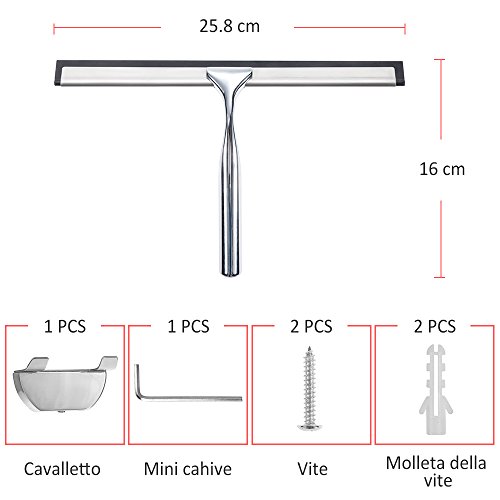 Rovtop Tergivetro Doccia Tergicristallo da Bagno in Acciaio Inox la Spazzola di Gomma di Pulire per Pulito Specchio, Vetro, Piastrelle Installa sul Muro