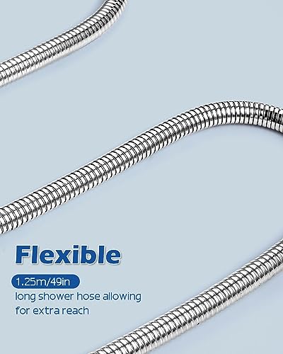 Rovtop 1,25m Tubo Doccia, Flessibile Doccia da Anti Torsione, Adatto a Tutti i Soffione Doccia, Tubo Flessibile Doccia in Acciaio Inox Tenuta Cromato, con Teflon e Guarnizioni