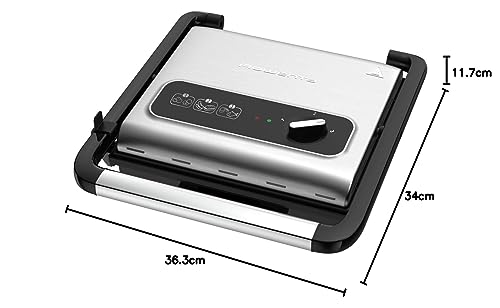 Rowenta GR242D Inicio Grill Adjust Bistecchiera con Griglia Multifunzione Antiaderente, Termostato Regolabile, 3 Livelli di Cottura, Grill Potente 2000 W, Alte Prestazioni, Vassoio Raccogligocce