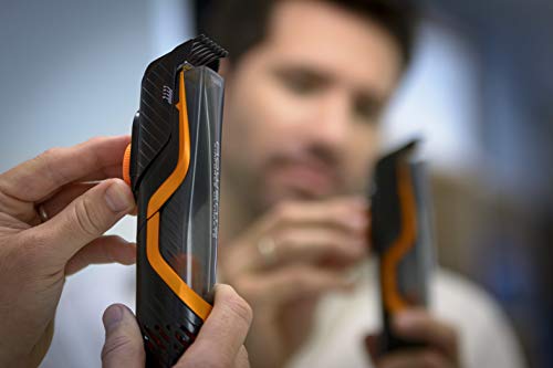 Rowenta TN9300 Airforce Ultimate, Tagliacapelli, Sistema di Aspirazione Integrato che Cattura il 99% dei capelli, 17 Lunghezze di Taglio, Tagliacapelli 3 in 1, Nero e Arancione