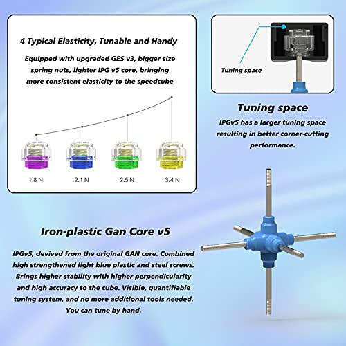 ◆ GAN ELASTICITY SYSTEM - The GESv2 has more debug space and stronger compatibility, which also means that you can adjust the speed cube to full fault tolerance when you do it properly. Different springs and debugging have more feel options. There are 4 types of springs with different elasticity in GES elastic components. Each elasticity corresponds to a color (yellow is the default), giving you a wider range of feel.