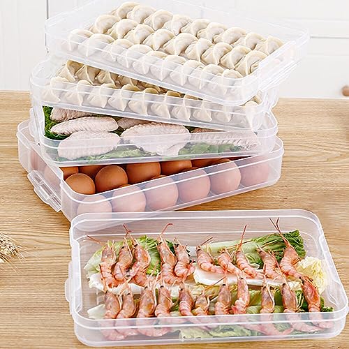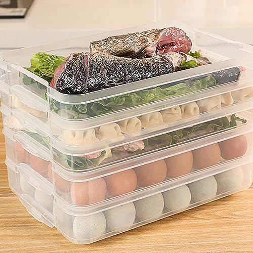RoxNvm Contenitori impilabili per congelatore, doppio strato Organizer per cassetti frigo, Contenitore per alimenti frigorifero con coperchio per conservare pesce, carne, verdure fresche (bilayer)