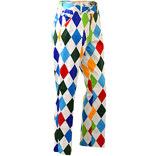 Royal & Awesome King of Diamonds - Pantaloni da Golf in Stile Funky, Bianco (Bianco), 34W x 32L