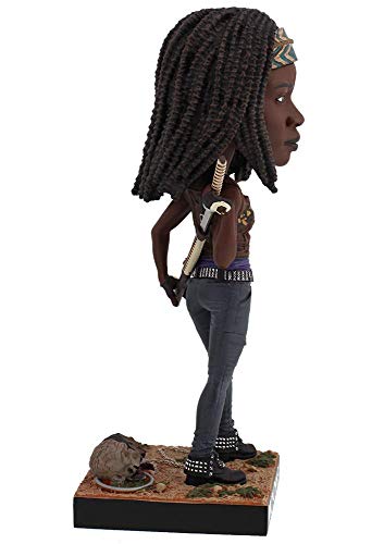 Questa statuina Bobblehead sapientemente elaborata raffigura realisticamente Michonne, impetuoso guerriero post-apocalittico in The Walking Dead! Dettagli davvero curati, dall'immancabile bandana, al gilè rattoppato, senza scordare la katana a tracolla, gli inconfondibili stivali e cintura e i suoi personalissimi animali da compagnia con vere catene sotto ai suoi piedi - Collezione The Walking Dead