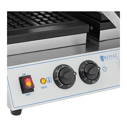 Royal Catering Piastra per Waffel Piastre per Cialde Belga RC-WMDS01 (2 x 1500 W, 179 x 100 mm, Acciaio inox, Timer 1-5 min)