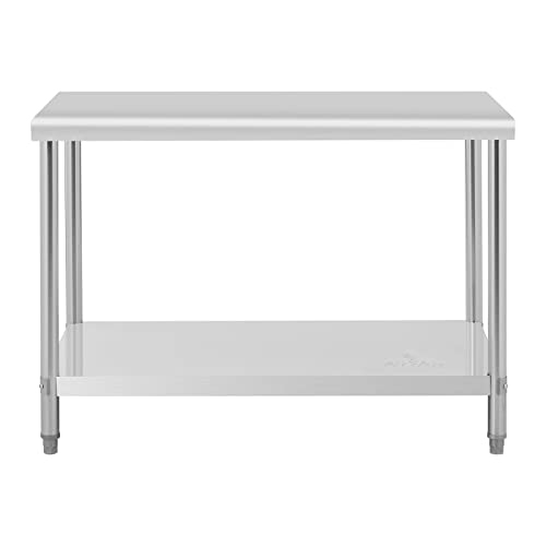 Royal Catering RCAT-120/70 Tavolo da Lavoro Piano di Lavoro per Cucina (120 x 70 x 85 cm, Carico max. 115kg, lastra HDF, Piedini regolabili, Acciaio inox)
